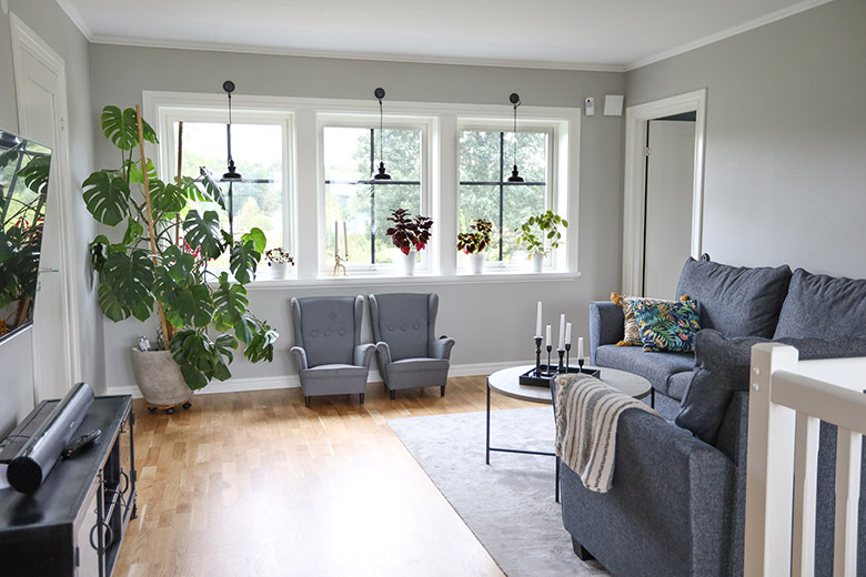 Vardagsrum med tre fönster. Hus från Alingsås huspaket - Husleverantör