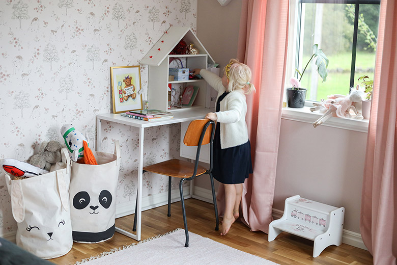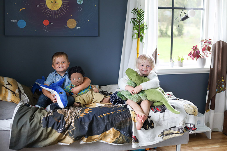 Båda barnen är så glada över att äntligen ha fått varsitt eget rum.