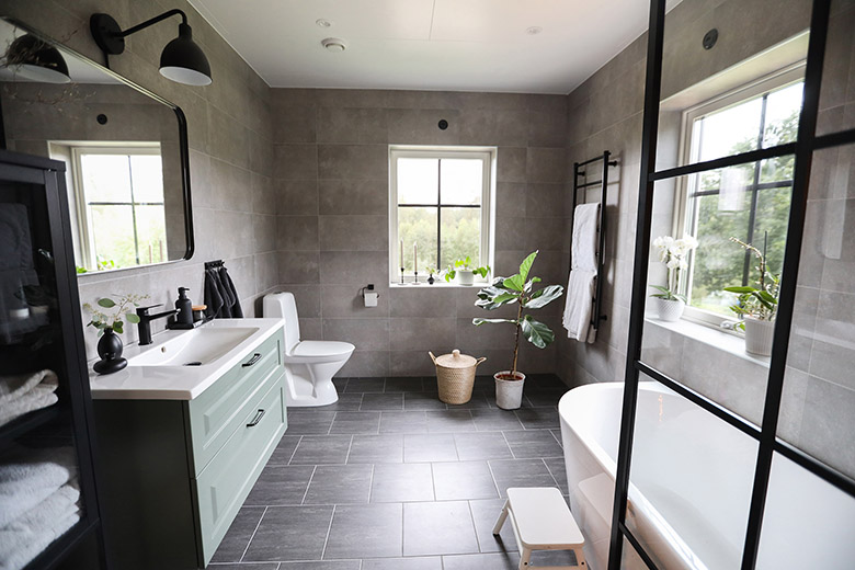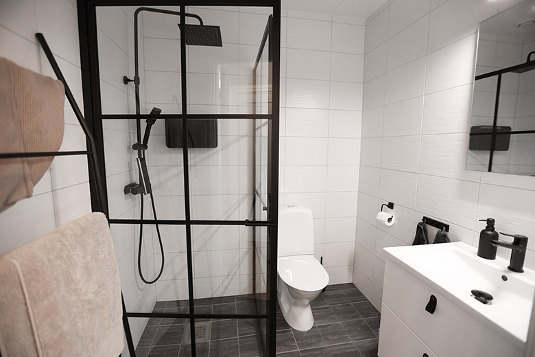 “Från början gjorde vi många val ur Alingsås Huspakets standardsortiment, det gjorde att vi hade möjlighet att ändra några beslut längst vägen. Vi hittade till exempel nya duschväggar på nätet som vi fastnade för. Då köpte jag dem direkt och kunde sedan ringa till Alingsås Huspaket och avbeställa de vi hade bokat. Flexibiliteten hos dem är verkligen otroligt bra, och även om vi gjort en del ändringar så har vi alltid blivit så trevligt bemötta.” säger Stefan.
