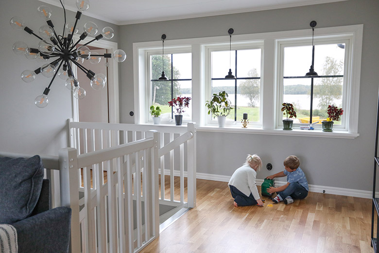 Något av det som familjen uppskattar allra mest med Alingsås Huspaket är flexibiliteten. Förutom att de var helt fria i utformningen av sitt hus har de kunnat lyfta på luren och göra ändringar som de kommit på efterhand. Efter att ha pratat med andra som byggt hus ändrade de sig till exempel från radiatorer till golvvärme på övervåningen.
