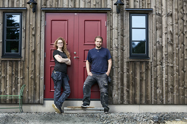 Med hjälp av en lokal byggentreprenör restes stomme och tak. Därefter har Maria och Fredrik gjort det mesta invändigt och även satt upp fasaden. Nedervåningen är klar och hittills har allt blivit till och med bättre än de förväntade sig. Nu återstår övervåningen så här finns alla möjligheter att bli ännu nöjdare.