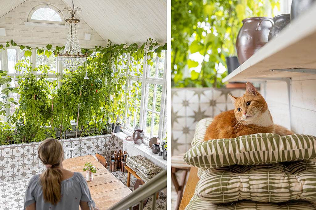 Orangeriet är Kaisas favoritplats i huset och katten Lilly håller med.