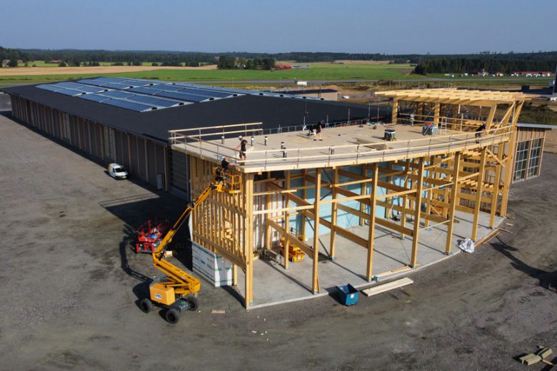 Längs med E20 i Vårgårda byggs just nu den sista etappen på Perssons Trätekniks nya, toppmoderna produktionsanläggning. Här kommer produktionen av Alingsås Huspakets stommar och takstolar att förläggas när den 7000 kvm stora anläggningen står färdig under våren 2025....