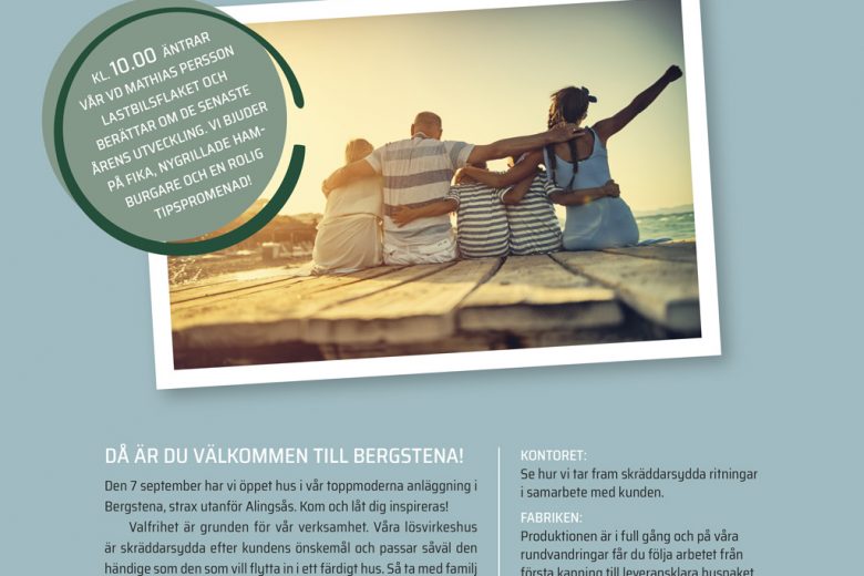 Den 7 september har vi öppet hus i vår toppmoderna anläggning i Bergstena, strax utanför Alingsås. Kom och låt dig inspireras!
