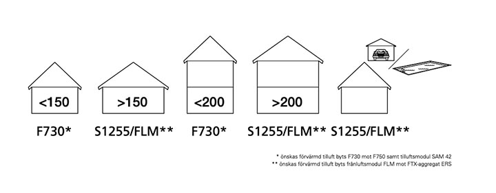 Sveriges absolut vanligaste värmepump är NIBE F730 och är även den modell som många av våra kunder på Alingsås Huspaket landar i. Det är en mycket prisvärd lösning som inkluderar ventilation, värme, varmvatten och återvinning i en och samma produkt. En frånluftsvärmepump går, till skillnad från en bergvärmepump, att installera oberoende av tomtens förutsättningar. Lägger du däremot till ett uppvärmt garage eller en uppvärmd pool i beräkningarna så har frånluftsvärmepumpen inte längre tillräckligt med kapacitet även om huset skulle vara mindre än 200 kvm. Då är det en bergvärmepump som gäller.