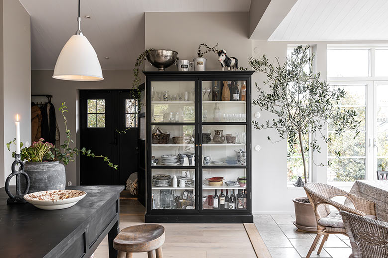 Redan när man kommer innanför dörren förstår man att det finns ett inredningsintresse i familjen. Alla detaljer är noga uttänkta och alla väggar är målade i samma kulör för att få en enhetlig känsla i huset. Renovering, hus och inredning är intressen som paret haft gemensamt hela livet. “Vi gillar att vara här och greja på helgerna och det gör ingenting om vi vill fixa med olika saker. Vi sammanstrålar alltid till lunchen”, säger Jochum.