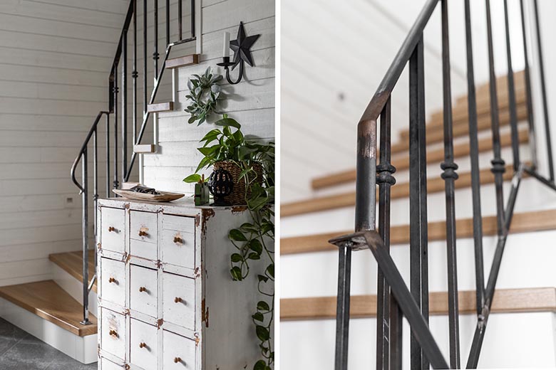 Paret berättar att de utvecklat sin inredningsstil under åren. I tidigare hus de bott i har de haft allt från en modern stil till ingen stil alls. Idag är deras stil en kombination av det klassiskt amerikanska och det dova skandinaviska. Paret har varit överens kring alla beslut under resan, och den moodboard som Shelly tog fram i början av processen har fått styra alla val för att få en enhetlig stil och känsla i huset. “Tack Pinterest för allt!” säger Shelly.