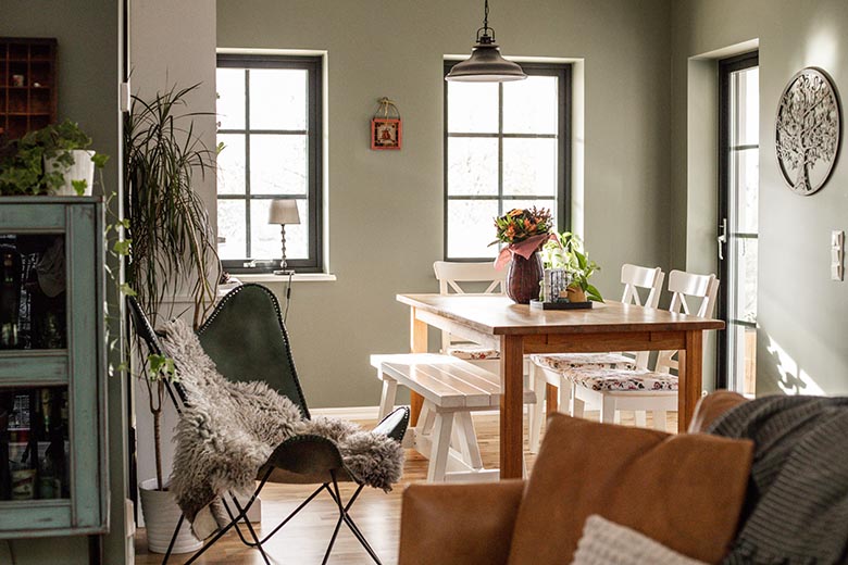 “När vi letade husleverantör var vi på Husknuten och gick där in i två likadana hus. Det var något med känslan i husen som skiljde sig, och när vi fick reda på att det ena huset hade en takhöjd på 240 cm och det andra på 270 cm beslutade vi oss för att också välja 270 cm. Det ger en helt annan rymd till huset. Vi åkte också till bostadsområdet Skårs Ängar för inspiration, dit Alingsås Huspaket levererat flera hus. Där kollade vi framförallt på olika ytterpaneler, om vi skulle ha liggande eller stående samt vilken bredd. Det var ett bra sätt för att få inspiration,” säger Khasha.
