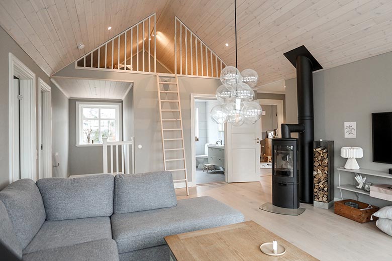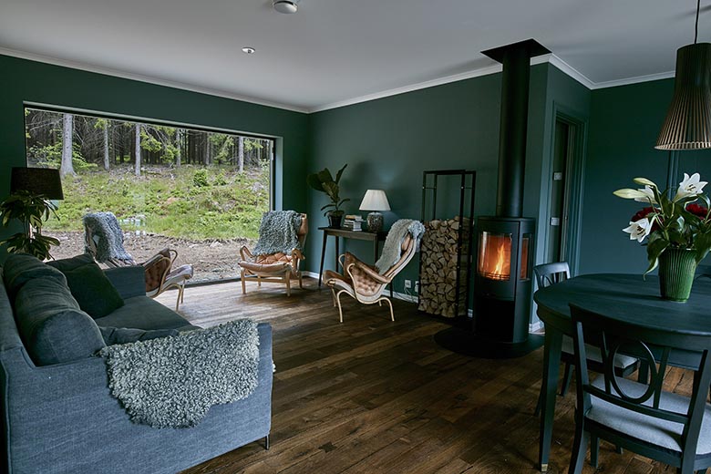 Till skorstenen som kommer upp på övervåningen har familjen Flodén anslutit ytterligare en braskamin, för att öka mysfaktorn även på ovanvåningen.