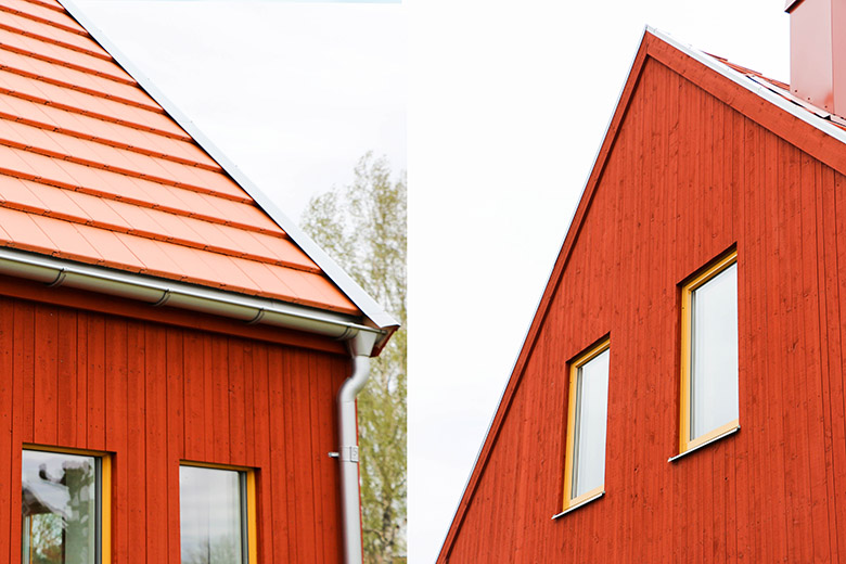 Agneta och Thore valde olika bredd på sin panel eftersom det ofta såg ut så på husen förr i tiden. Fasaden är målad med slamfärg i en röd ton som även den var vanlig förr. Här kan du läsa ett inspirerande hemma-hos-reportage från deras nya hem!