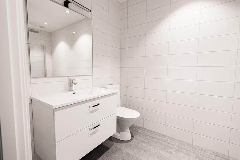 Varje hus har två stilrena badrum med dusch, ett på nedervåningen och ett på övervåningen.