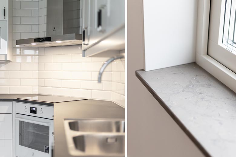 Förutom gedigna kök har man också valt att satsa på vackra fönsterbrädor i sten.