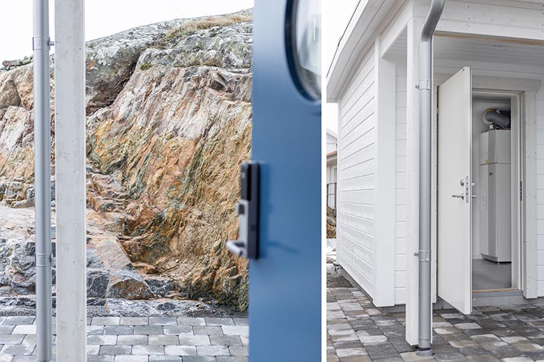 Eftersom husen byggs på en ö har man tagit hänsyn till viktiga aspekter som sol, vind och regn när man utformat husen och dess placering på tomten. Varje hus har en egen uteplats där man på ett eller annat sätt har en plats med både sol och lä. Husen har varsitt eget varmförråd med värmepanna och plats för förvaring av utemöbler, cyklar eller annat man vill förvara frostfritt. Materialvalen är noga genomtänkta och man har valt att satsa för att bygga hus som ska hålla i längden, både stilmässigt och ur ett hållbarhetsperspektiv.