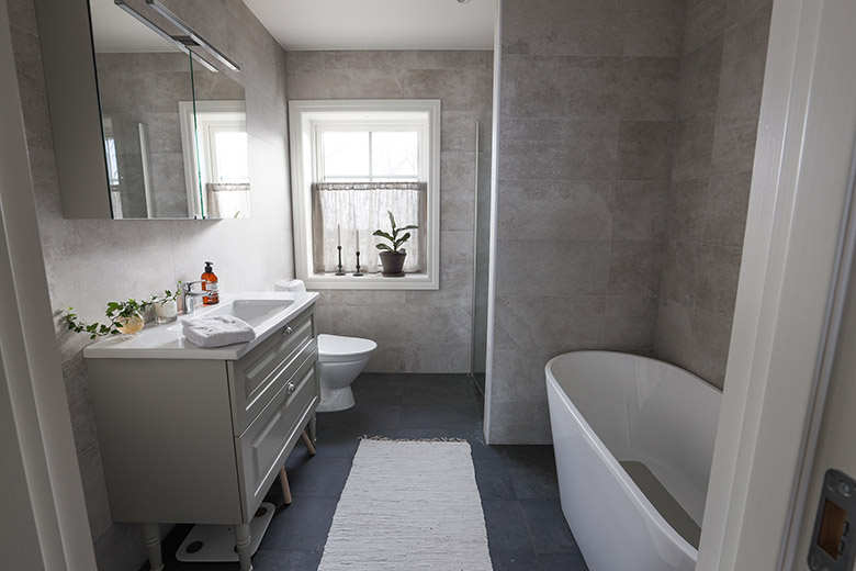 Något annat som Anna och Wictor är nöjda med är deras groventré och tvättstuga. Från början var tanken att ha ett stort rum där entré och tvättstuga kombinerades, men efter att ha sett en smart lösning på sin husturné ändrade de sina tankar. Istället valde de att dela upp utrymmet så att man kommer in i en hall med förvaring för skor och jackor längst med väggarna. Därifrån leder en dörr ut till den stora hallen och en dörr leder in i tvättstugan. På så sätt blir det enkelt att hålla tvätten och de leriga stövlarna separerade.
