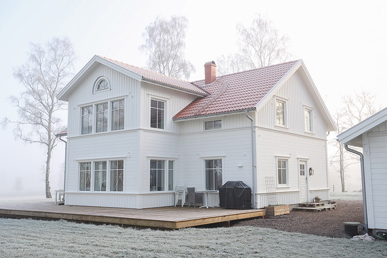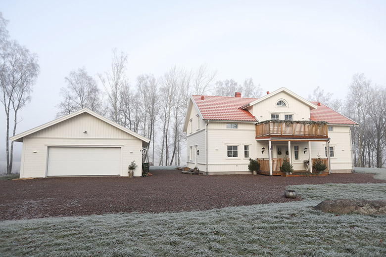 Det vackra huset i sekelskiftesstil omringas av en idyllisk miljö som består av både öppna ängar, skogsdungar, en slingrande landsväg, gärdsgårdar och tät skog. Den lantliga stilen som Anna och Wictor valt på sitt hus skapar känslan av att huset alltid har stått här. Anledningen till att huset placerades just här finns precis bakom krönet, där bor nämligen Annas föräldrar.