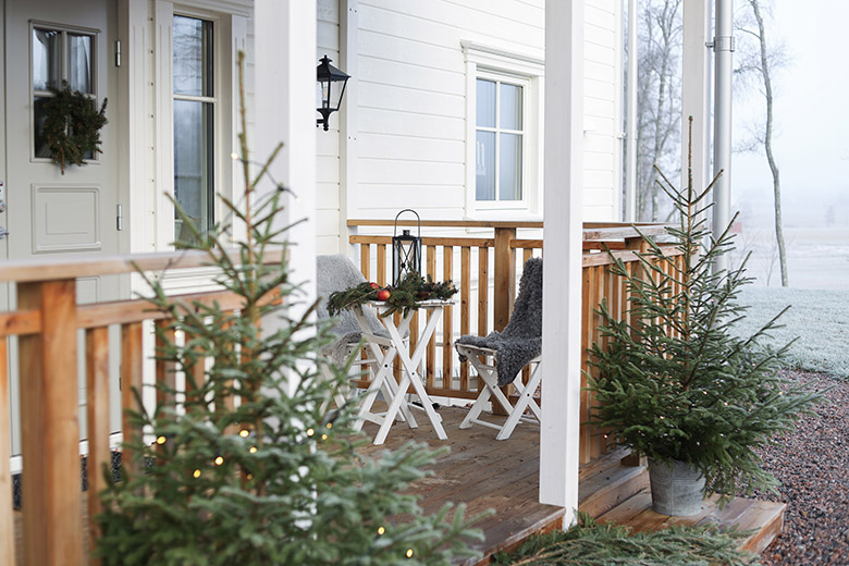 En rymlig farstukvist som välkomnar både julen och gästerna.