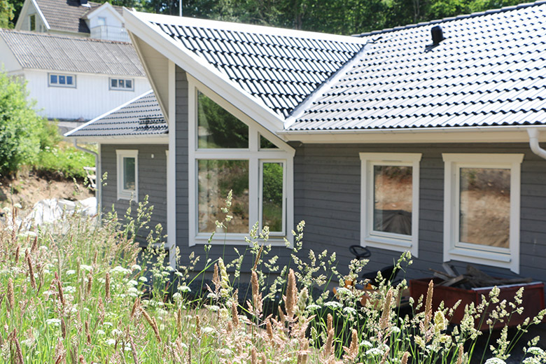 “Johanna såg ett hus på Alingsås Huspakets hemsida som hon visade mig, vi båda fastnade direkt för det unika och häftiga utseendet. Vid entrén fanns ett burspråk i en speciell vinkel som mötte spetsen på nocken, det var framförallt den detaljen som vi gillade. Vi utgick från det huset som Alingsås Huspaket tidigare hade byggt och ändrade planlösningen så som vi själva ville ha det.” berättar Henrik.