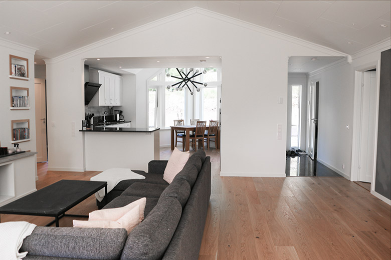“Vi besökte Husknuten i Göteborg där flera husleverantörer byggt upp visningshus, där kan man få mycket inspiration. När vi skulle välja kök kollade vi hos köksleverantörerna Alingsås Huspaket samarbetar med och det gick smidigt att ta beslut när man såg allt framför sig. I och med att de samarbetar med lite olika leverantörer blir det extra enkelt när man ska åka och kika i showroom och sedan beställa.” säger Johanna.