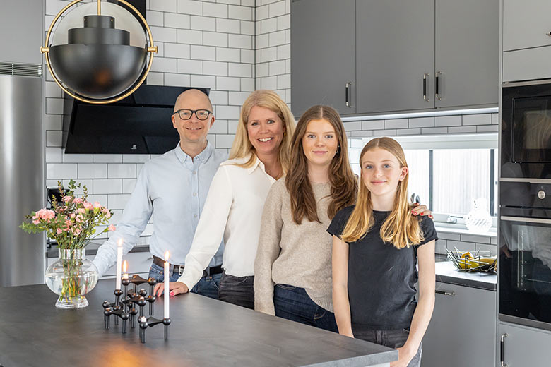 Efter att ha hittat en tomt i det perfekta området kunde familjen Cronholm äntligen förverkliga sin husdröm. Det vackra och moderna ladhuset med tjärvitriol, svarta takpannor och en stor terrass i söderläge stod klart för två år sedan. Då flyttade Carina och Daniel in med döttrarna Nelli och Meia, och katterna Astrid och Inez.