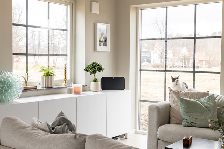 Systemet Plejd är installerat i hela huset så att till exempel belysning och lås kan styras från familjens mobiler när de är på semester.