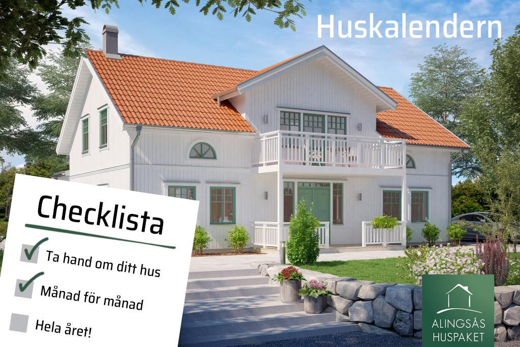 Även om man bor i ett nybyggt hus är det viktigt att underhålla det för att huset ska må bra. Om du tar en titt runt huset med jämna mellanrum kan du upptäcka saker i god tid, då kan du minska risken att något slits ut eller går sönder och du sparar både tid och pengar. Använd vår huskalender som guide för hur du tar hand om ditt hus under årets säsonger.