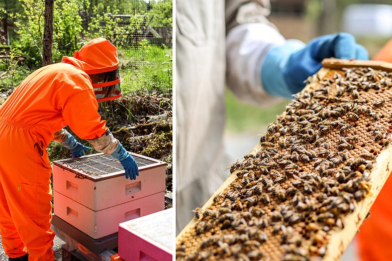 Ingrid har bikupor på 16 bigårdar runt om Alingsås, Lerum och Sävedalen, var av en plats är hemma. Här håller hon i kurser och arrangerar bisafari samt honungsprovning.