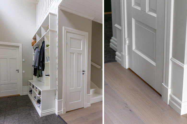 Familjen Cronholm har byggt in garderober i sin hall för att skapa en snygg och praktisk förvaring.