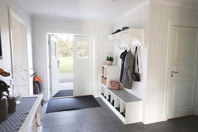 Genom att planera din nya hall på ett genomtänkt sätt, både när det kommer till planlösning och inredning, kan du skapa förutsättningar som gör livet lite enklare! Vi på Alingsås Huspaket vet att ett hem är så mycket mer än bara ett hus. Hemmet är, för de allra flesta av oss, vår tryggaste plats och hallen är det första och sista som omfamnar oss när vi kommer och går. Med några enkla knep kan du skapa ett smidigt flöde och en trevlig rumskänsla i din nya hall!
