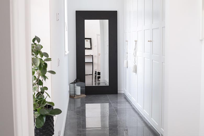 Oavsett om man har en stor eller liten hall så är speglar ett effektivt sätt att skapa rymd och göra det ombonat i hemmet. Ett tips är också att placera föremål du gillar på platser som reflekteras i spegeln.