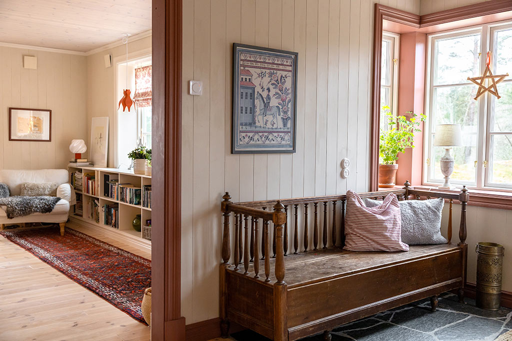 “Jag är väldigt nöjd med att vi fått till den gammaldags känslan i huset trots att vi valt en lite öppnare planlösning. Jag tycker att vi har fått till flödet i huset bra”, säger Beata.