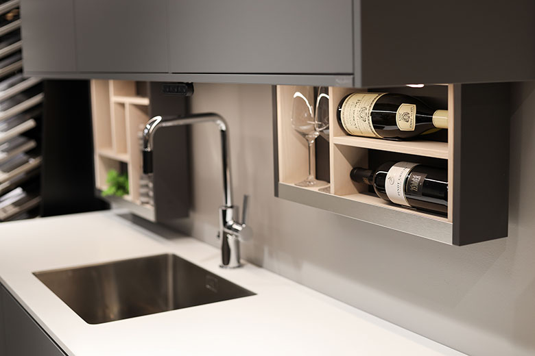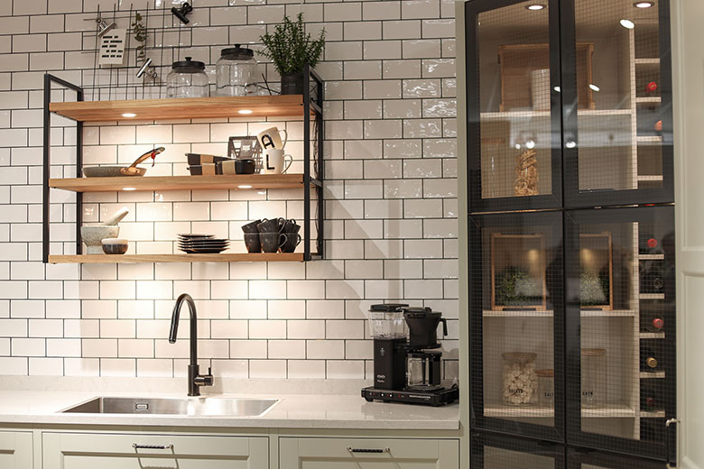Det finns otroligt många detaljer att välja på som tillsammans hjälper till att sätta stilen för hela köket. Vägghyllor för glas och vinflaskor är bara ett exempel.