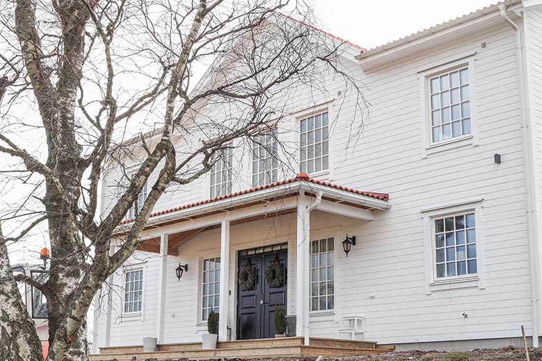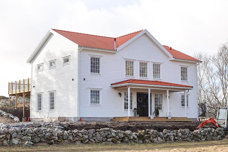 “Allt kring själva huset har gått hur bra som helst, och det har varit enkelt att arbeta med Alingsås Huspaket. Dels fick vi vägledning i vad vi kunde göra själva för att komma ner i pris, och vi kunde alltid få svar på våra frågor över telefon eller mail. Innan vi gjorde beställningen hade vi ett kompletteringsmöte hos Alingsås Huspaket där vi gick runt i deras showroom för att välja spröjs, lister, trappa och mycket mer. Jag tyckte att det var mycket val men jag tröttnade faktiskt aldrig”, säger Carolina.