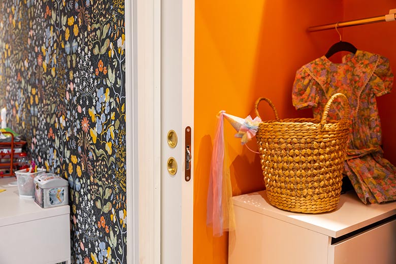 Bra förvaring är något som varit viktigt för familjen Blomster. “I barnens rum fick vi till förvaringen jättebra, de har varsin klädkammare. Det var en lösning som Alingsås Huspaket kom på och hjälpte oss att få till. Vi har haft en bra dialog med Alingsås Huspaket hela tiden och vi har känt att de tagit hand om våra tankar. Vi har kommit med många bilder på hur vi vill ha det. Det har varit skönt att kunna säga – såhär och såhär vill vi ha det, och så har de löst alla våra önskemål”, säger Elsa.