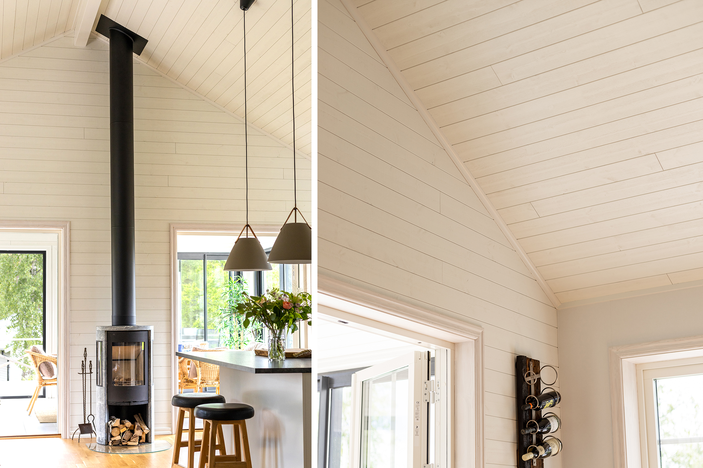 Det blir effektfullt att välja samma panel på både vägg och tak, som familjen Agné gjort i sitt sommarhus. Det blir effektfullt att välja samma panel på både vägg och tak, som familjen Agné gjort i sitt sommarhus.