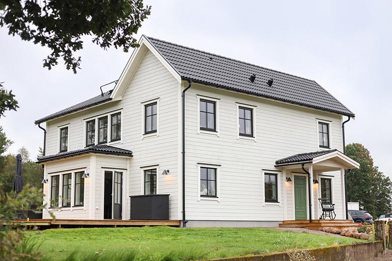 Klassiskt sadeltak med 1-kupig betongpanna från Benders. Bildkälla: Benders.