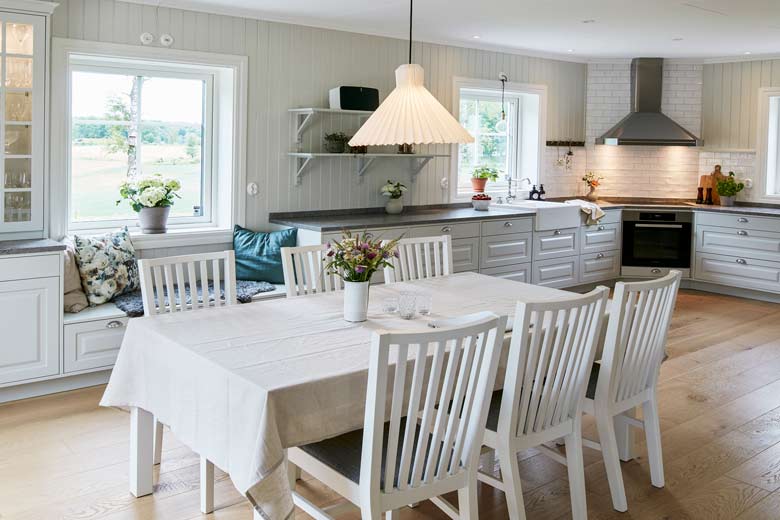 För familjen Stenseke var det viktigt med ett rymligt kök med plats för många gäster, därför valde de en öppen planlösning utan köksö.