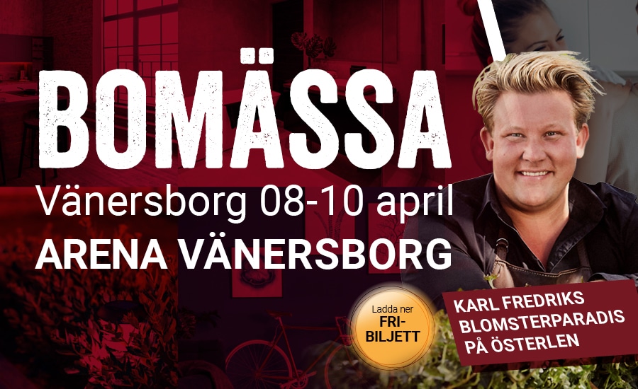 Årets största bygg- och boendehelg kommer att bli en härlig helg fylld med inspiration, erbjudanden och experthjälp. Bomässan och Dryck & Deli inbjuder till två mässor under ett och samma tak. Dessutom besöker Karl-Fredrik på Eklaholm mässan under hela helgen. Under lördagen håller han en inspirerande föreläsning vid två tillfällen där vi får följa med på en resa som sträcker sig över hela året när han delar med sig av sina bästa tips kring inredning och trädgård. Det blir ett föredrag du inte vill missa!