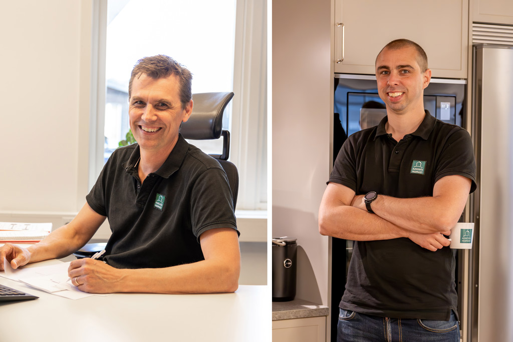 För oss är det viktigt att vara en trygghet under hela processen i den mån kunden behöver oss. Vissa är helt trygga med processen redan från start medan andra behöver mer vägledning och stöttning. “En typisk dag för oss består av mycket telefonsamtal, mejl och såklart kundmöten på plats i vårt showroom här i Bergstena. Vi passar ofta på att visa kunderna runt i vår anläggning och ute i produktionen för att man ska få en känsla av att allt faktiskt tillverkas här bredvid kontoret. Att kunna visa upp hela kedjan för kunderna är rätt häftigt ändå! Men vi sitter ju inte här på kontoret varje dag. Vi är även ute på mycket platsbesök hos våra kunder. Ibland kan det vara för att kika på tomten tillsammans med kunden i ett tidigt skede, eller för att vara med på en utplacering av huset på tomten. Vi gör såklart också platsbesök vid slutbesiktningen när huset är färdigt”, berättar Mattias Björkdahl.