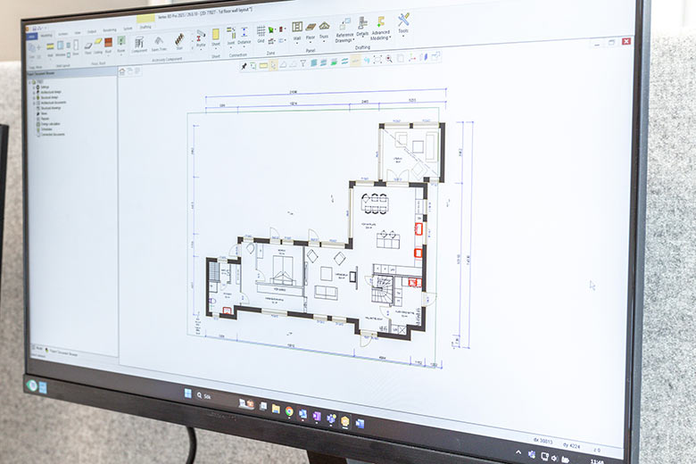 “Eftersom alla våra hus ritas från ett blankt papper och med stor variation behöver det finnas lösningar i programmet som tar hänsyn till det och underlättar för oss i vårt jobb. Vi behöver t.ex. kunna gå in och ändra en takhöjd och flytta på ytterväggar mitt under projektets gång, vilket man inte kan i alla program. Standard är att man väljer alla fasta mått när man skapar projektet, men vi behöver kunna ändra allt löpande. Vi har haft en bra dialog med Vertex i flera frågor likt detta där de har gått in och specialanpassat vissa funktioner efter våra önskemål. Det har varit avgörande att kunna anpassa programmet efter våra processer och vår flexibilitet eftersom vi inte jobbar på samma sätt som många andra husleverantörer”, säger Pernilla.