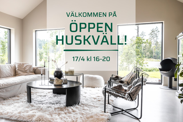 Kanske ligger husdrömmen närmare än du vågar tro? Onsdagen den 17 april kl 16-20 är du varmt välkommen på en inspirerande Öppen Huskväll i vårt showroom i Bergstena. Vi bjuder på kaffe och smörgåstårta ihop med massor av inspiration för dig som drömmer om att bygga hus. Och vet du vad det bästa är? Allt är möjligt!