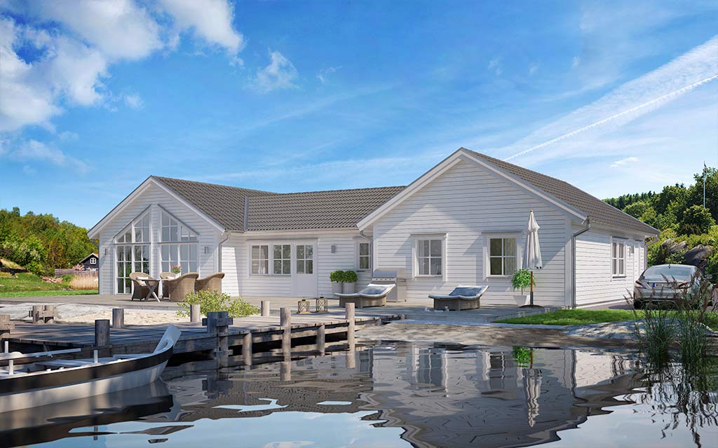 Vitt hus vid vattnet