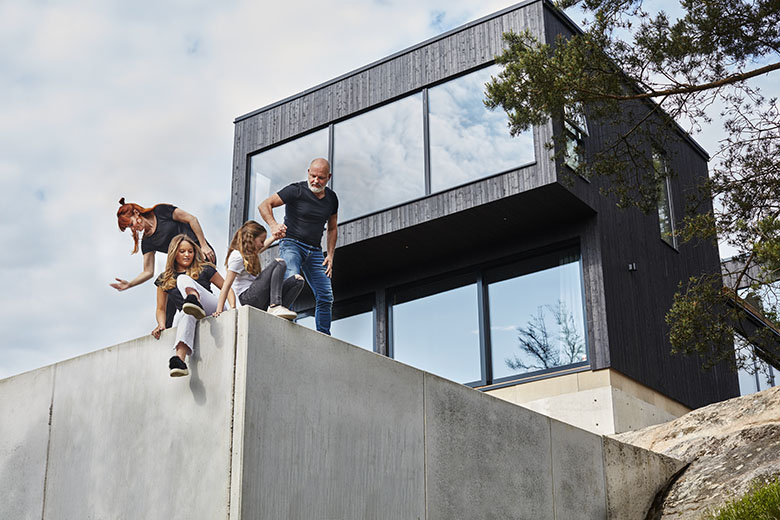 ”Vi ville bygga ett hus på vårt sätt, helt efter våra egna önskemål. Ett praktiskt och vackert hem som fungerar för hela familjen årets alla dagar.” Genomtänkt trivsel för både stora och små Sofia och Fredrik funderade länge på...