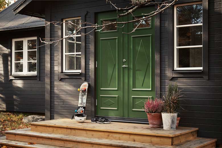 Pardörr “Britta Glas” i grönt. Bild: Diplomat. En välkomnande ytterdörr kan hjälpa till att sätta stilen och bli pricken över i för hela ditt nybyggda hus. Man kanske tänker att “En dörr är bara en dörr” men i verkligheten...